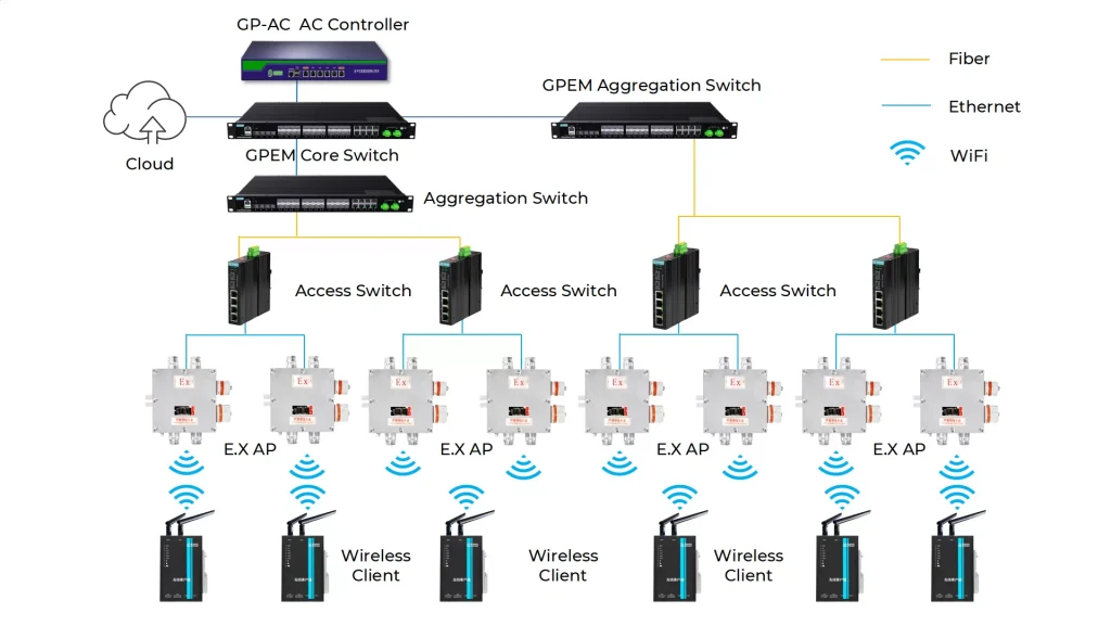 - Industrial Explosion-proof Wireless: GP-AP1200FB industrial explosion-proof APs, 31 units total, with explosion-proof omnidirectional antennas