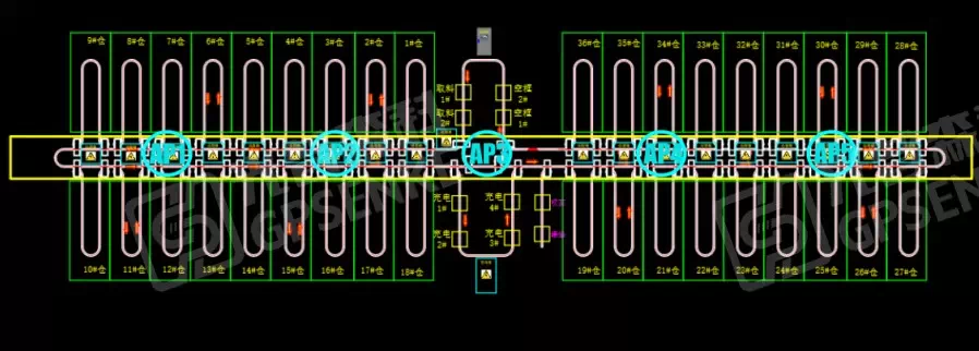 Following on-site survey and CAD layout planning, a comprehensive wireless coverage design for the AGV system has been developed (CAD and network topology diagrams shown here), providing the foundation for subsequent equipment deployment and network configuration.