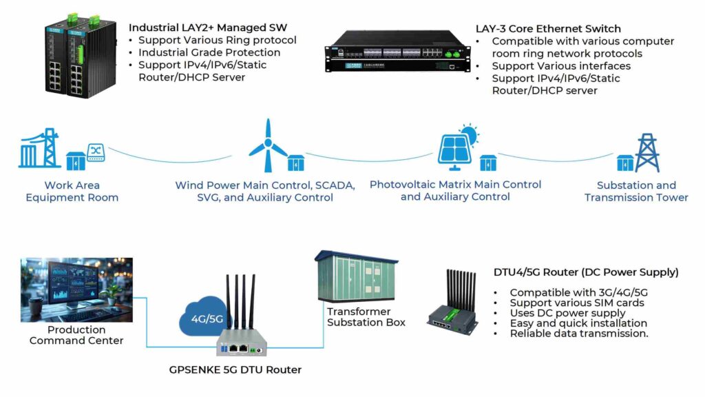 GPSENKE offers scalable network architectures based on the varying needs of solar plants. Whether for a single site or a distributed network of multiple stations, our solution efficiently and flexibly supports network deployment and resource optimization, ensuring long-term development.