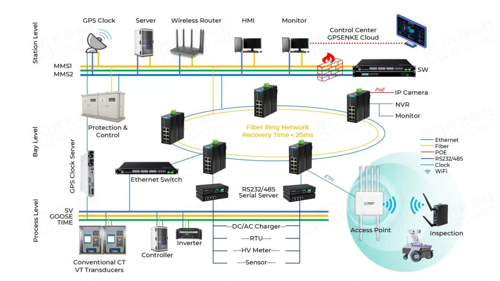 By combining fiber-optic transmission and wireless bridge technology, we establish stable and fast communication links for solar plants, ensuring real-time data transmission. Whether in areas requiring fiber-optic installation or remote stations where cabling is not possible, GPSENKE’s solution provides efficient connectivity and reliable remote data transmission.